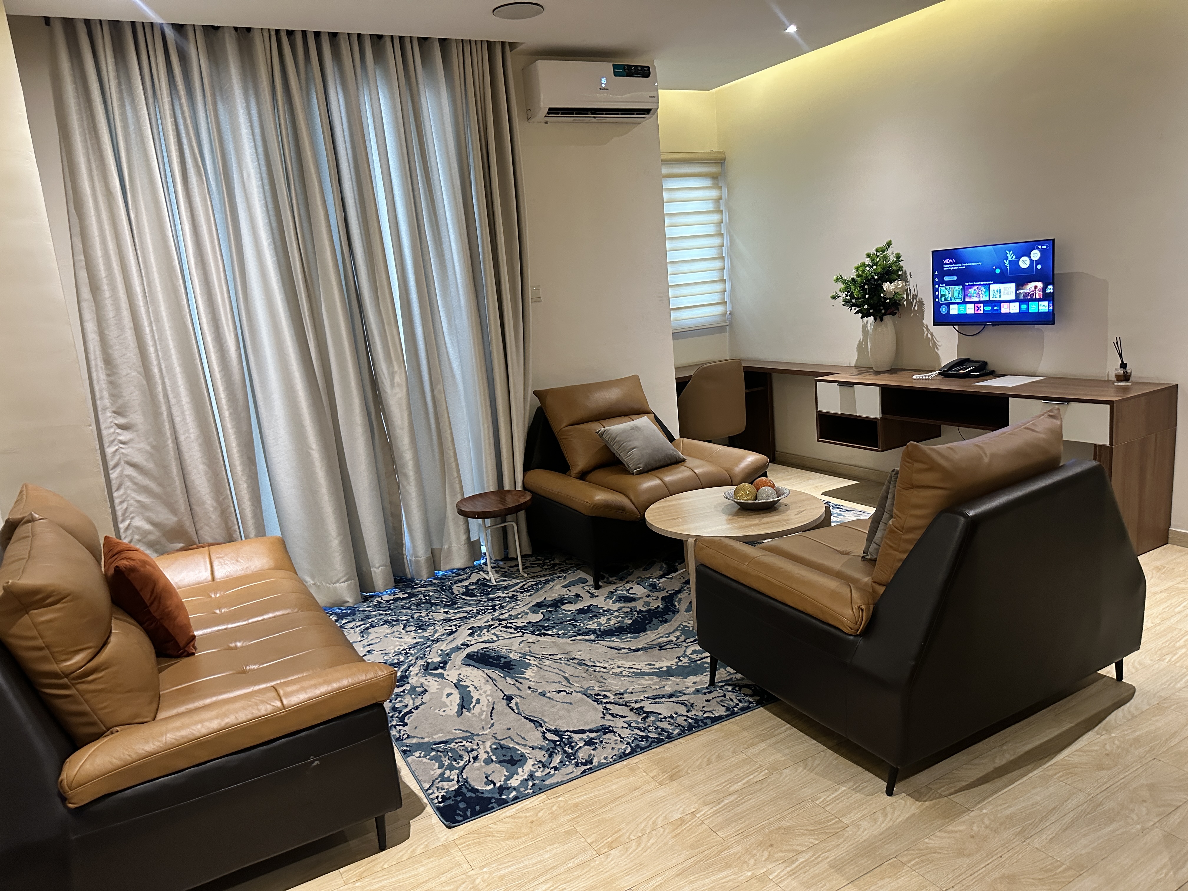 Our Presidential Suite offers an exceptional blend of luxury, space, and comfort. Featuring a spacious living room, two elegant bedrooms, and a private balcony, this suite is ideal for VIP guests, executives, or families seeking premium hotel accommodation.